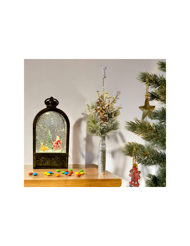 Lanterna di Natale Arc Brunita Glitter LED H24cm, LED Bianco Caldo, Musica Natalizia, Batteria o Trasformatore