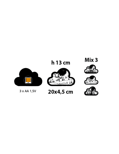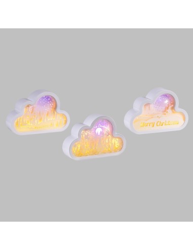 Decorazione di Natale Papercut Silhouette Nuvola 20cm, Mix3 Modelli, LED Bianco Caldo e Blu, Timer 6h, Batteria ASSORTITO