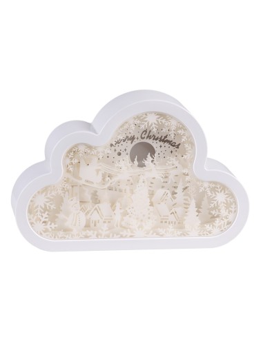 Decorazione luminosa Papercut Silhouette Nuvola 20cm in plastica bianca elegante