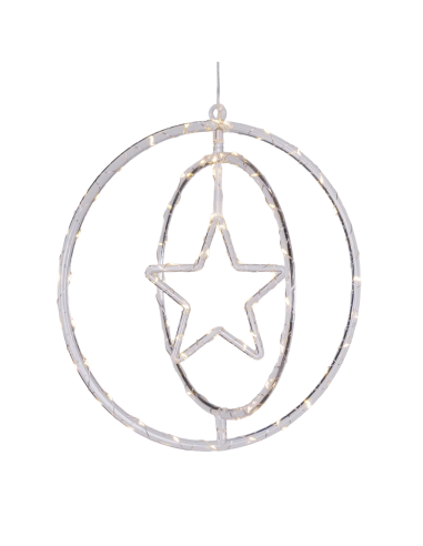 Decorazione di Natale ø32cm PGS Crystal, Mix3 Soggetti Stella Fiocco Albero, MicroLED Bianco Caldo, Timer 8h, Batteria ASSORTITO