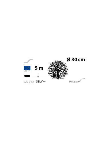 Grazie all’anello nella base, può essere facilmente fissata o appesa in base alle esigenze decorative. Certificata IP44, è adatta sia per uso interno che esterno, alimentata da trasformatore SELV di sicurezza e con cavo trasparente da 5m per una collocazione pratica e discreta.