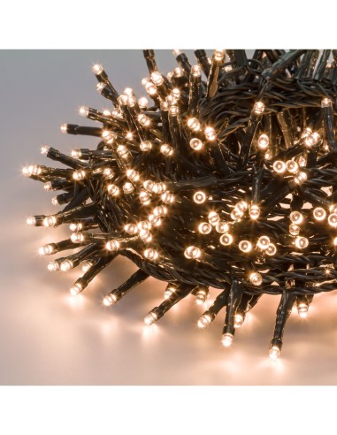 Catena di Natale MiniCluster ø6cm NTL 9,1m, 432 LED Bianco Caldo, 8 Giochi di Luce, Timer 8h, Cavo Verde, Esterno