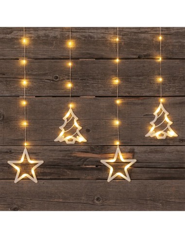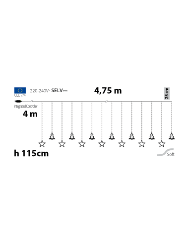 Composta da 20 decorazioni miste Stelle e Alberi di Natale, integra 560 LED SMD SuperBright Bianco Caldo ø4mm, che diffondono una luce intensa e uniforme.