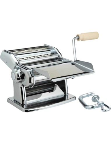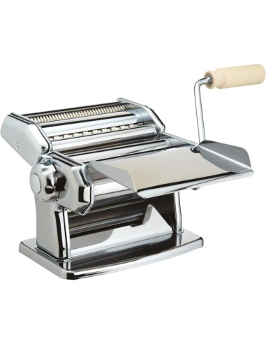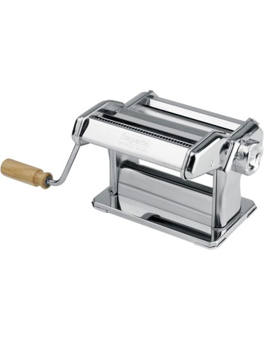 La macchina per pasta Imperia SP150 è l’accessorio ideale per chi ama preparare pasta fresca fatta in casa. Costruita in solido acciaio cromato, garantisce durata e precisione. Grazie al duo-cutter incluso, consente di realizzare tre varietà di pasta: lasagne, fettuccine e tagliatelle. La manopola regolabile offre fino a sei spessori di sfoglia, per soddisfare ogni ricetta. Dotata di manico in legno staccabile e morsetto a vite, è facile da riporre e stabile durante l’uso.