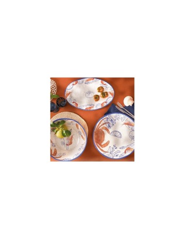 Il vassoio rotondo Ocean Life di Rose & Tulipani è un elegante complemento da tavola che porta la magia del mare direttamente a casa tua. Con un diametro di 42 cm, questo vassoio in melamina è decorato con un motivo che fonde gli abitanti del profondo blu con i colori caldi e mediterranei dell’arancione.