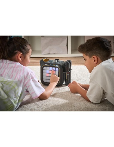 Il divertimento continua con 8 giochi integrati, ideali per momenti di intrattenimento in famiglia o con gli amici. Tutto è racchiuso in un design solido, con maniglia per il trasporto e alimentazione a batterie (incluse), per portare la festa ovunque tu voglia.