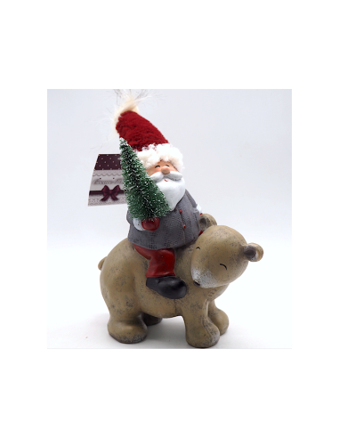 Statuetta Babbo Natale su orso in poliresina resistente e curata nei dettagli