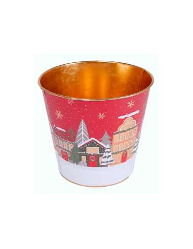 Decorazione cachepot di Natale rosso 18x17cm in metallo con paesaggio - La magia di Natale a casa tua