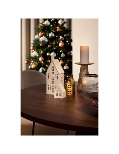La Casetta C-LED Dickens Cuore Oro è una decorazione natalizia raffinata che unisce eleganza e atmosfera festiva. Realizzata in porcellana di alta qualità, presenta un design originale con una romantica finestra a cuore e una finitura oro brillante che la rende un dettaglio prezioso per il tuo arredamento natalizio.
