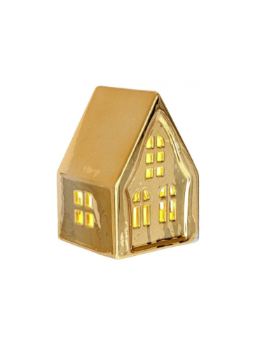 Casetta natalizia luminosa in porcellana finitura oro elegante
