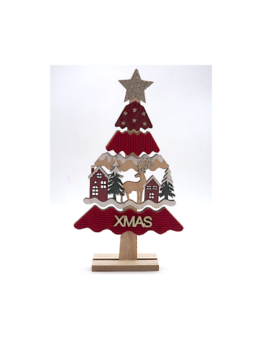 Decorazione Albero in Panno 29,5x16,5x4cm, Addobbo Natalizio da Tavolo o Mensola, Stile Morbido e Tradizionale
