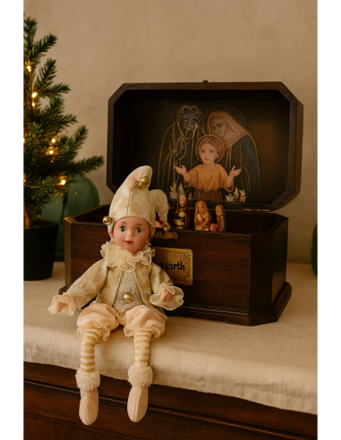Il giullare di Natale seduto verde oro 13x8x40,6 cm è una decorazione particolare e raffinata, pensata per chi desidera un addobbo originale e ricercato. La combinazione di colori verde e oro dona eleganza, mentre il design seduto lo rende perfetto per essere collocato su mensole, tavoli o in allestimenti scenografici natalizi. Ideale per chi ama distinguersi con uno stile unico.