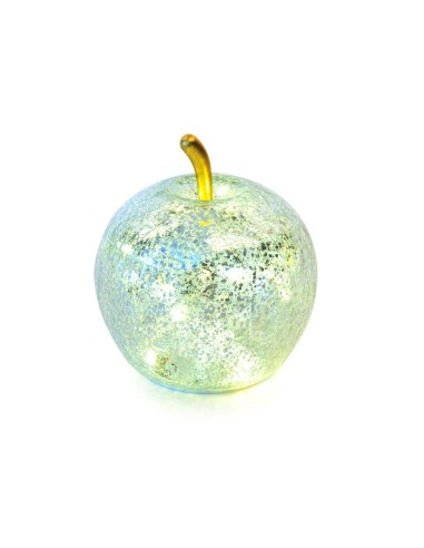 illumina e impreziosisci i tuoi spazi con questa decorazione a forma di mela in vetro color argento, completa di luce interna. con dimensioni compatte di 11x12 cm, è perfetta da posizionare su mensole, tavoli o come dettaglio luminoso nelle decorazioni natalizie o di design. elegante e raffinata, unisce stile e atmosfera calda per creare un angolo speciale in ogni ambiente.