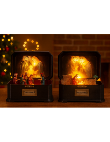 Natività di Natale in music box con led, presepe elegante, la magia di Natale per la tua casa