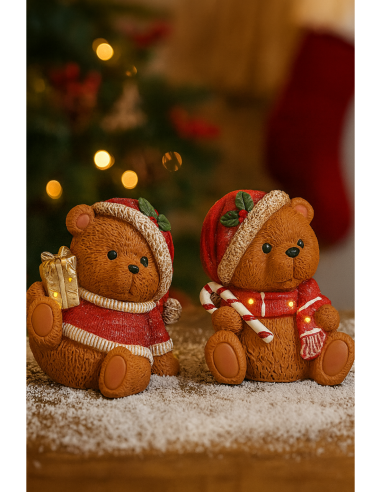 L’orsetto di Natale seduto con led assortito è una decorazione tenera e luminosa, perfetta per chi ama arricchire la casa con dettagli dolci e festosi. I led diffondono una luce calda che valorizza i particolari colorati, rendendolo ideale per tavoli, mensole o come soprammobile natalizio. Grazie al suo aspetto simpatico e rassicurante, è anche una splendida idea regalo per bambini e adulti.