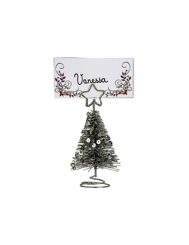 Decorazione segnaposto albero di Natale D5xH10cm in metallo argento con paillettes - La magia di Natale a casa tua