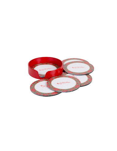 Ogni sottobicchiere è decorato con la scritta “Merry Christmas” e motivi tipici delle festività, rendendo ogni brindisi o pausa caffè ancora più allegra e accogliente.