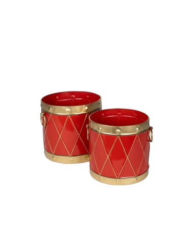 TAMBURO CONTENITORE 2 MIS METALLO 25X22CM ROSSO/BIANCO