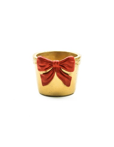 Vaso fiocco di Natale in cemento dorato, dimensioni 13x13x10,5 cm