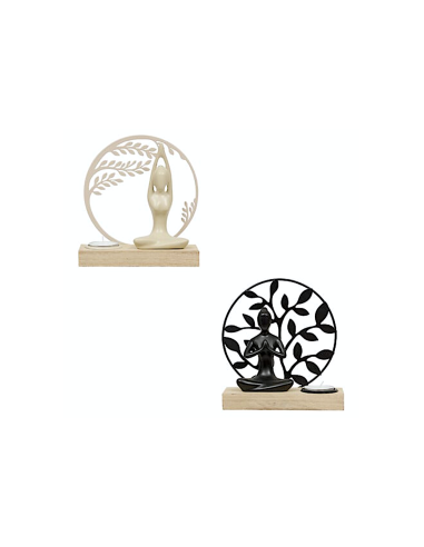 Portacandela Yogi in legno e metallo, dal design moderno e raffinato