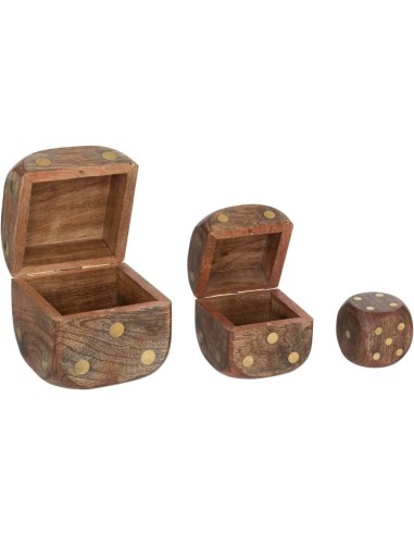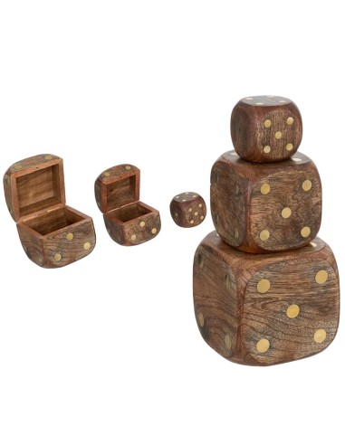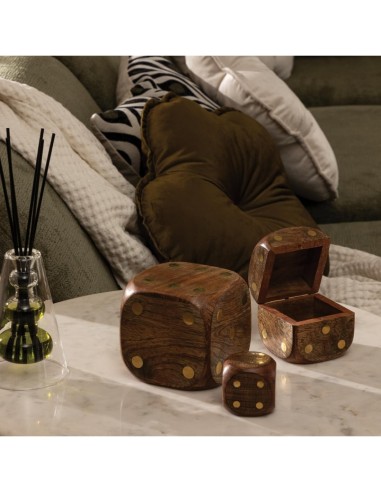 Il set decorativo da tavolo Roger di Atmosphera è composto da tre dadi in legno di mango e dettagli in ottone, ciascuno di dimensioni diverse. Questo accessorio caldo e autentico può essere impilato o disposto separatamente su tavolini, mensole o vassoi, aggiungendo un tocco retrò e raffinato al vostro arredamento. Perfetto per collezionisti di oggetti in legno e ottone o per chi desidera creare un ambiente accogliente.