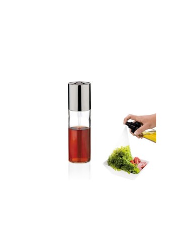 Condire l'insalata in un attimo? Facile, con i dosatori spray per olioe aceto: basta qualche rapida pressione per distribuire i condimenti in modo semplice, preciso e veloce, senza sporcare. Il flacone in vetro e il coperchio in acciaio lucido hanno un design moderno ed elegante. Dimensioni: ø 5 cm - altezza 18 cm
