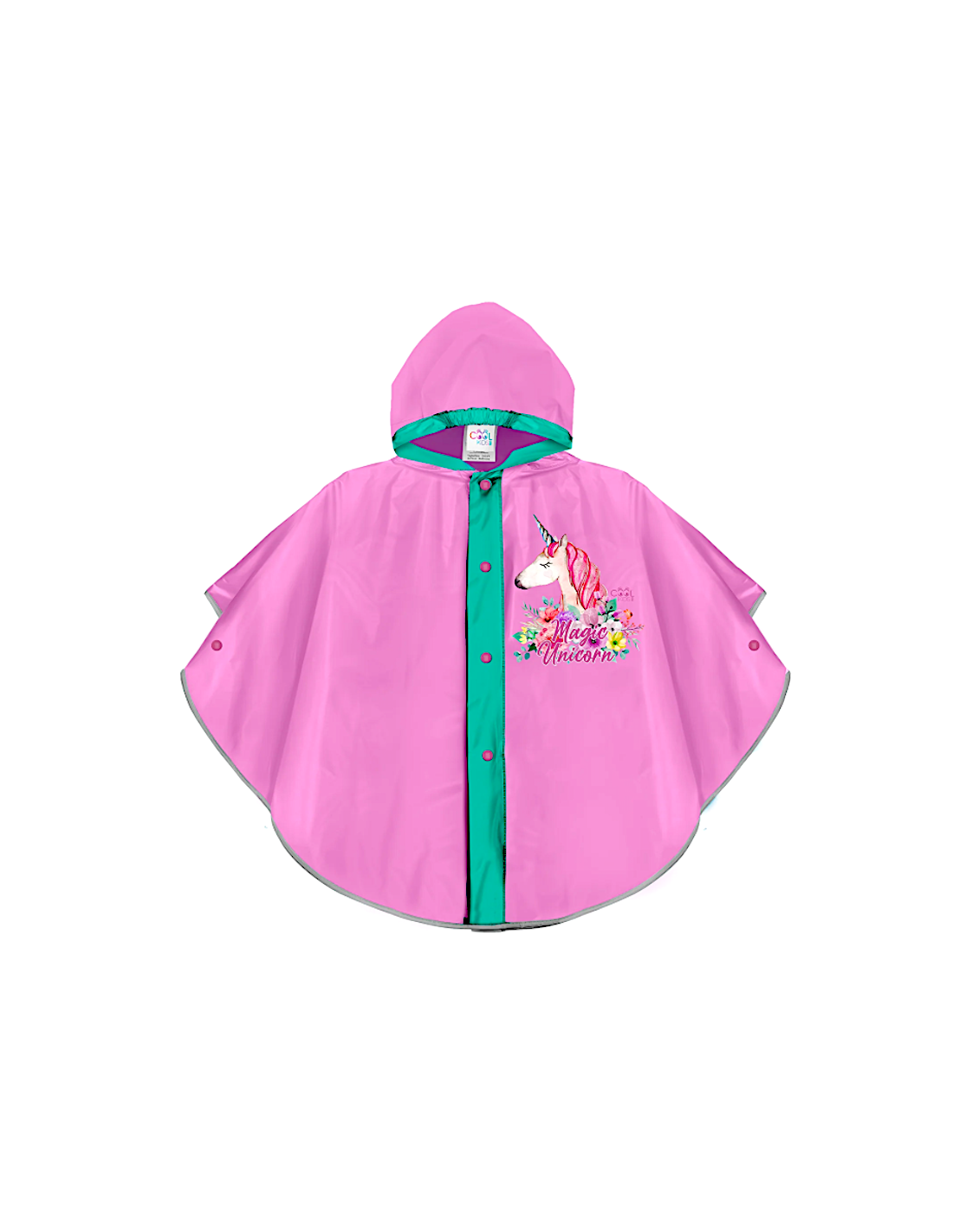 Impermeabile multicolore con stampa Unicorno vivace e originale