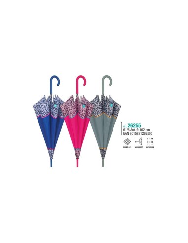 26255 OMBRELLO DONNA 61CM AUTOMATICO BORDO LEOPARDO