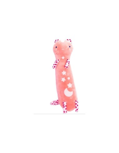 Con una lunghezza di 80 cm, il peluche è perfetto per essere abbracciato o utilizzato come cuscino per guardare la TV o durante i viaggi. I disegni di stelle, cuore e luna cuciti sul peluche si illuminano al buio, creando un effetto luminoso che aggiunge un tocco di magia e comfort notturno.