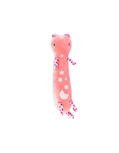 Con una lunghezza di 60 cm, il peluche è perfetto per essere abbracciato o utilizzato come cuscino per guardare la TV o durante i viaggi. I disegni di stelle, cuore e luna cuciti sul peluche si illuminano al buio, creando un effetto luminoso che aggiunge un tocco di magia e comfort notturno.
