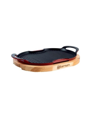 Aeternum Griglia in Ghisa Ovale 36x26 cm con Vassoio in Legno – Adatta a Induzione