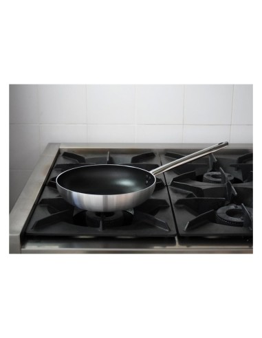 Il manico in acciaio inox, robusto e progettato per rimanere freddo più a lungo, garantisce sicurezza e facilità d’uso, rendendo questa padella ideale per professionisti e appassionati di cucina.