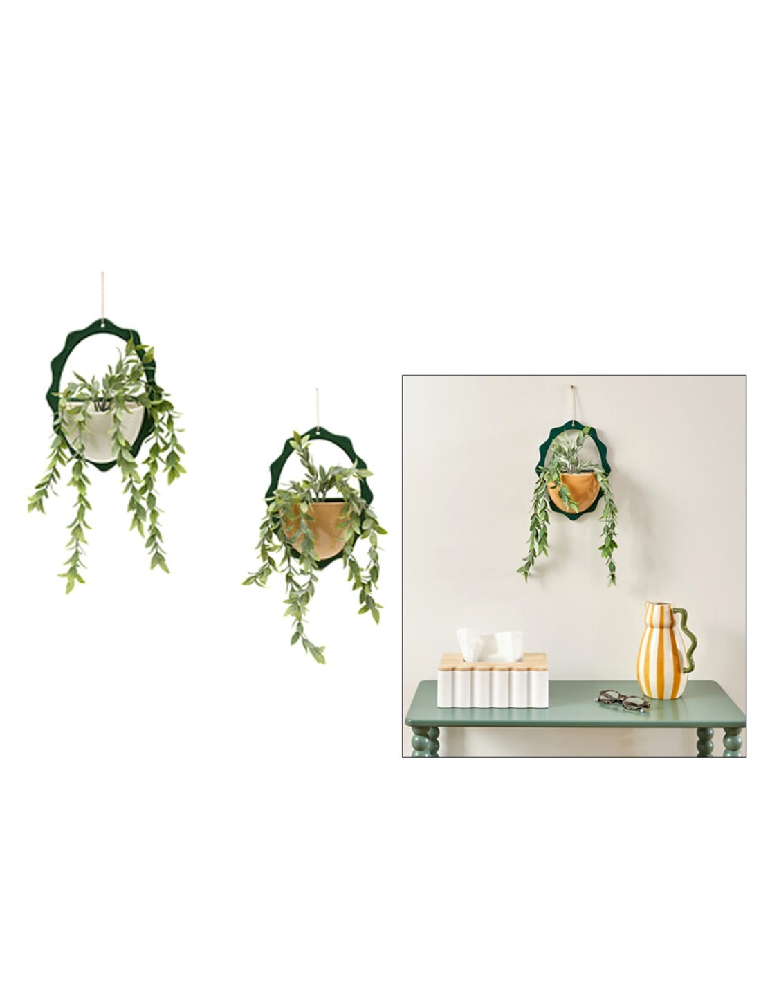 La pianta sospesa Chéri è una soluzione decorativa versatile e di tendenza per ambienti domestici o commerciali. Grazie al vaso in ceramica assortito nei toni dell’ocra e bianco, unito al supporto in juta, crea un effetto visivo leggero e naturale. La pianta artificiale, realizzata in PE, non richiede manutenzione ma mantiene un aspetto fresco e realistico. Con un'altezza complessiva di 52 cm, è ideale per decorare angoli, pareti o spazi verticali con stile e originalità.