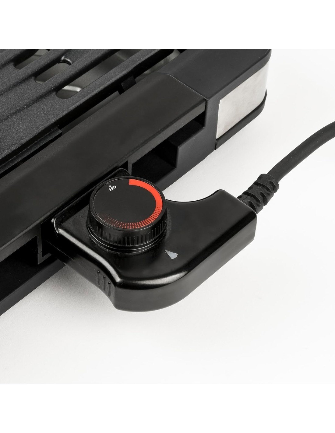 Il barbecue elettrico G3 Ferrari Tito da 1800 W permette di grigliare carne, pesce e verdure in modo semplice, sicuro e senza fumi né odori. La resistenza integrata nella piastra riduce i fumi, rendendo possibile l’uso anche in ambienti chiusi. Il termostato regolabile consente di scegliere la temperatura ideale per ogni alimento, mentre il telaio in plastica termoresistente garantisce sicurezza durante l’uso. La piastra XL antiaderente da 36,5 x 25,5 cm offre ampio spazio per cuocere tutto in una volta. Il pratico vassoio raccogli grasso raccoglie i liquidi in eccesso, rendendo la cottura più sana e la pulizia veloce. Tutti i componenti sono completamente smontabili per una pulizia semplice e rapida.