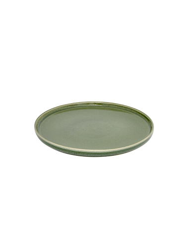 Piatto piano, Terre Inconnue, diametro 27 cm, verde kaki, faience, 26,7 x 2,3 cm