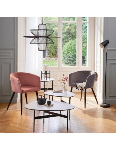 Accogliente e raffinata, la poltrona "Marlo" di Atmosphera Créateur d’intérieur unisce comfort e stile contemporaneo. Il rivestimento in velluto nero e le gambe in metallo creano un design elegante e versatile, mentre l’effetto trapuntato con cuciture tono su tono aggiunge un dettaglio estetico sofisticato. Perfetta per salotto, studio o camera da letto, questa poltrona può essere facilmente spostata per adattarsi ai tuoi spazi.