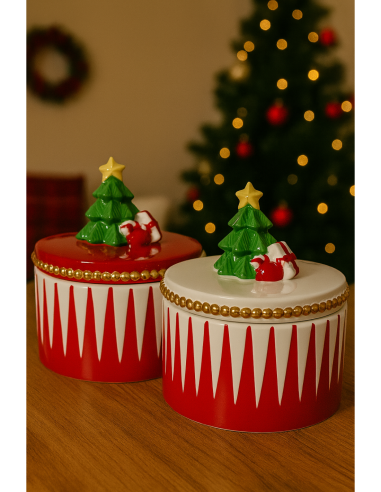 Barattolo in ceramica 14 cm con decoro alberello natalizio assortito
