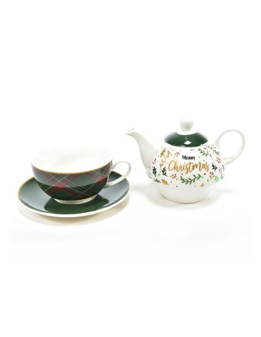 Set Teiera e Tazze Tartan Verde (Teiera: Capacità 400 ml) - Eleganza e Gusto Natalizio in un Unico Set Regalo