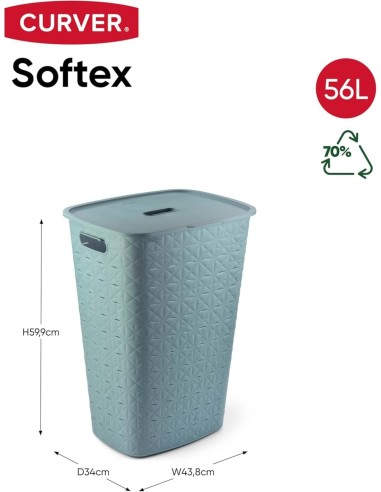 La cesta portabiancheria Softex 56 L di Curver è una soluzione elegante e funzionale per mantenere l’ordine in bagno, lavanderia o zona living. Realizzata con oltre il 70 % di plastica riciclata, combina un design moderno effetto tessuto intrecciato con un’ampia capacità, perfetta per il bucato quotidiano.