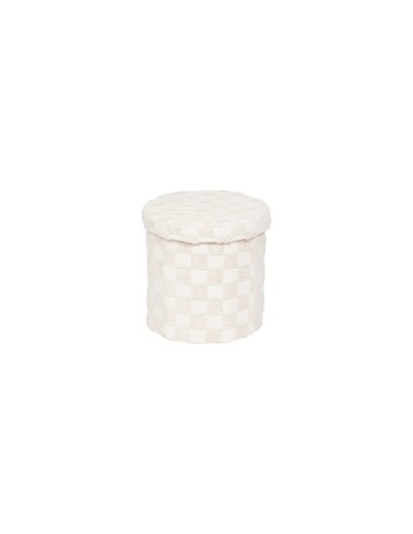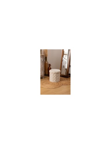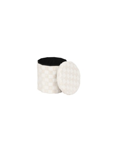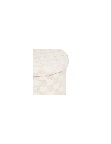 Pouf pieghevole rotondo con diametro 38 cm e rivestimento tufté bianco