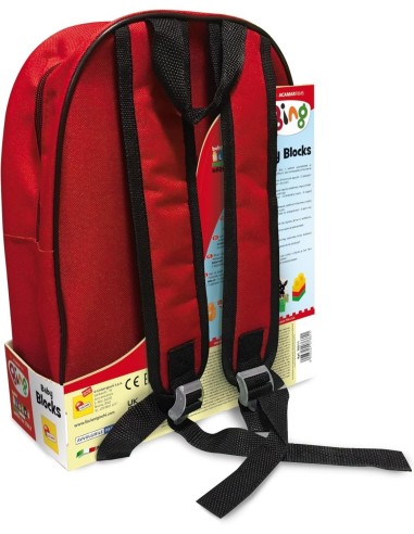 Il set comprende pezzi grandi e sicuri, facili da manipolare, ideali per sviluppare la coordinazione mano-occhio, la creatività e le prime abilità di costruzione. Grazie al design compatto e al colore rosso brillante, i bambini possono portare il loro zainetto ovunque, rendendo il gioco sempre disponibile.
