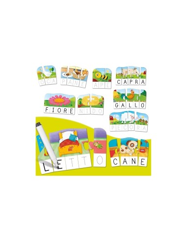 Carotina Gli Utilissimi Le Prime Parole è un gioco educativo progettato per aiutare i bambini a imparare le prime parole attraverso l'associazione di lettere e disegni. Utilizzando un metodo didattico efficace, il gioco offre tessere autocorrettive che permettono ai bambini di verificare autonomamente le loro risposte. Questo gioco è ideale per lo sviluppo del linguaggio e della comunicazione, facilitando l'acquisizione di lessico, scrittura e lettura.