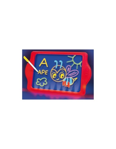 Effetti Speciali Fluorescenti: Gli effetti speciali fluorescenti e il pannello trasparente della lavagna permettono di visualizzare disegni e scritte in modo luminoso e accattivante, stimolando la creatività dei bambini.