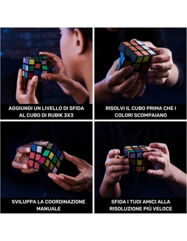 - Tecnologia Termocromatica: I colori delle tessere appaiono e scompaiono con il calore del tuo tocco, aggiungendo una sfida unica al classico Cubo di Rubik.