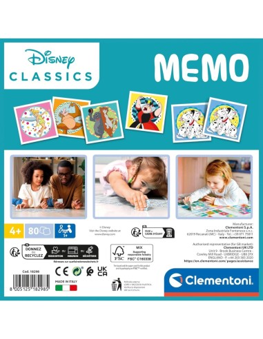 Un gioco classico e sempre attuale per sviluppare le capacità di osservazione e memoria dei bambini. Il set include 80 tessere illustrate da 6 x 6 cm, resistenti e colorate, raffiguranti i personaggi Disney preferiti. Lo scopo del gioco è abbinare il maggior numero di tessere identiche, rendendo la sfida divertente e coinvolgente. Adatto ai bambini a partire dai 4 anni, questo gioco educativo è perfetto per l'età prescolare. Prodotto in Italia, il Memo Disney Classics è ideale per trascorrere del tempo di qualità con i propri amici e familiari.