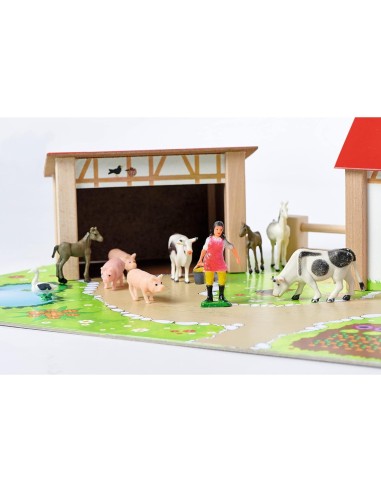 - Ampio set da gioco: il contadino e il contadino vivono nella fattoria e gli animali vivono in una grande e accogliente stalla. Il set comprende 20 pezzi, tra cui oche, mucche, maiali e cavalli.