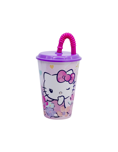 BICCHIERE IN PLASTICA 430ML CON CANNUCCIA E COPERCHIO HELLO KITTY
