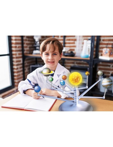 Il kit comprende un modellino del sistema solare da montare e dipingere con l’aiuto di pennello e colori a tempera, così da rendere l’esperienza creativa oltre che educativa. Grazie alle cards astronomiche e al poster incluso, i bambini possono conoscere stelle, pianeti e corpi celesti in modo chiaro e divertente.