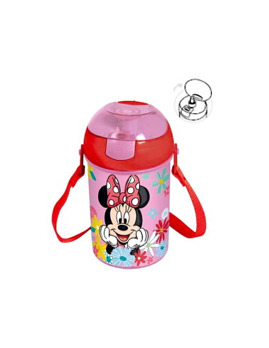 BORRACCIA POP-UP 450ML IN PLASTICA ROSA MINNIE CON TRACOLLA, PER BAMBINI