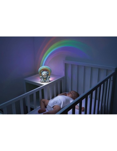 Chicco Rainbow Bear Proiettore Musicale è il compagno perfetto per aiutare i neonati a creare un ambiente sereno e rilassante per il sonno. Questo adorabile orsetto combina una proiezione di luce arcobaleno con musica calmante, rendendo il momento della nanna un'esperienza magica.